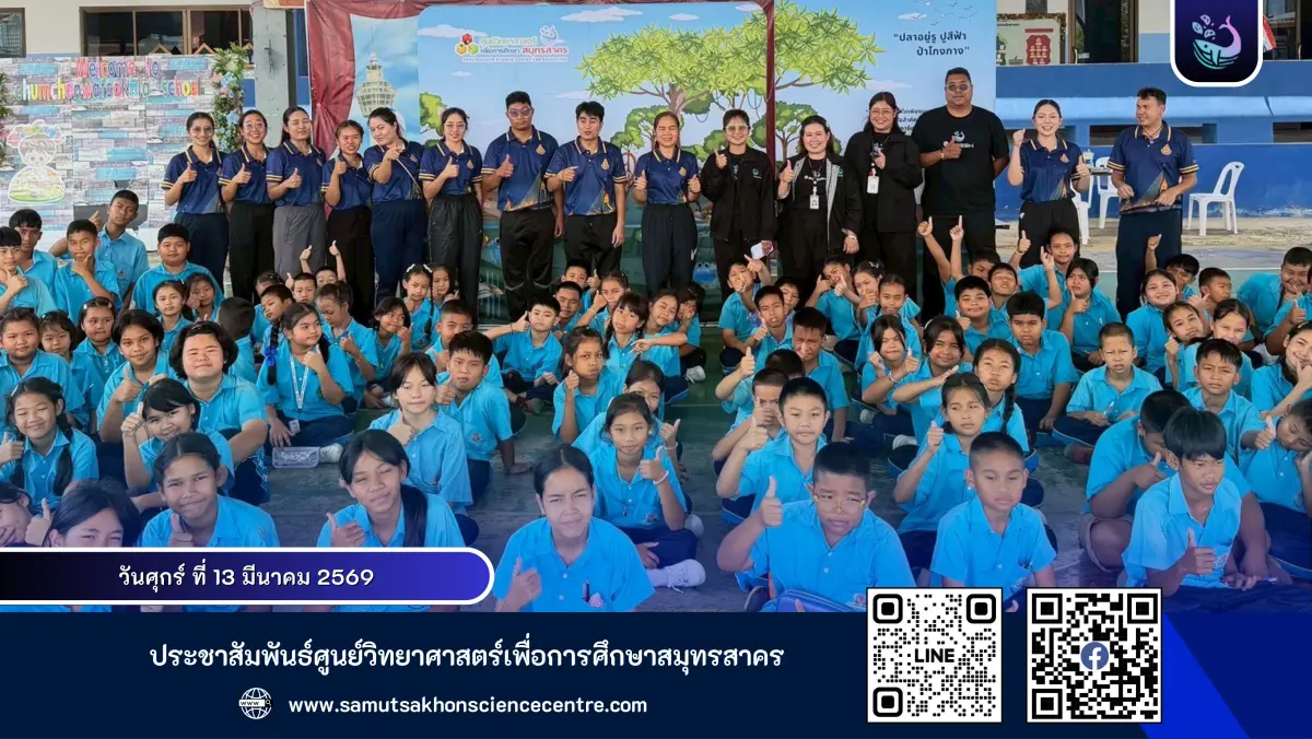 ศูนย์วิทยาศาสตร์เพื่อการศึกษาสมุทรสาคร จัดกิจกรรมวิทยาศาสตร์เคลื่อนที่สู่สถานศึกษา ครั้งที่ 2 ให้กับนักเรียนโรงเรียนชุมชนวัดสาขลา จังหวัดสมุทรปราการ จำนวนทั้งสิ้น 100 คน เพื่อส่งเสริมการเรียนรู้ด้านวิทยาศาสตร์นอกห้องเรียน