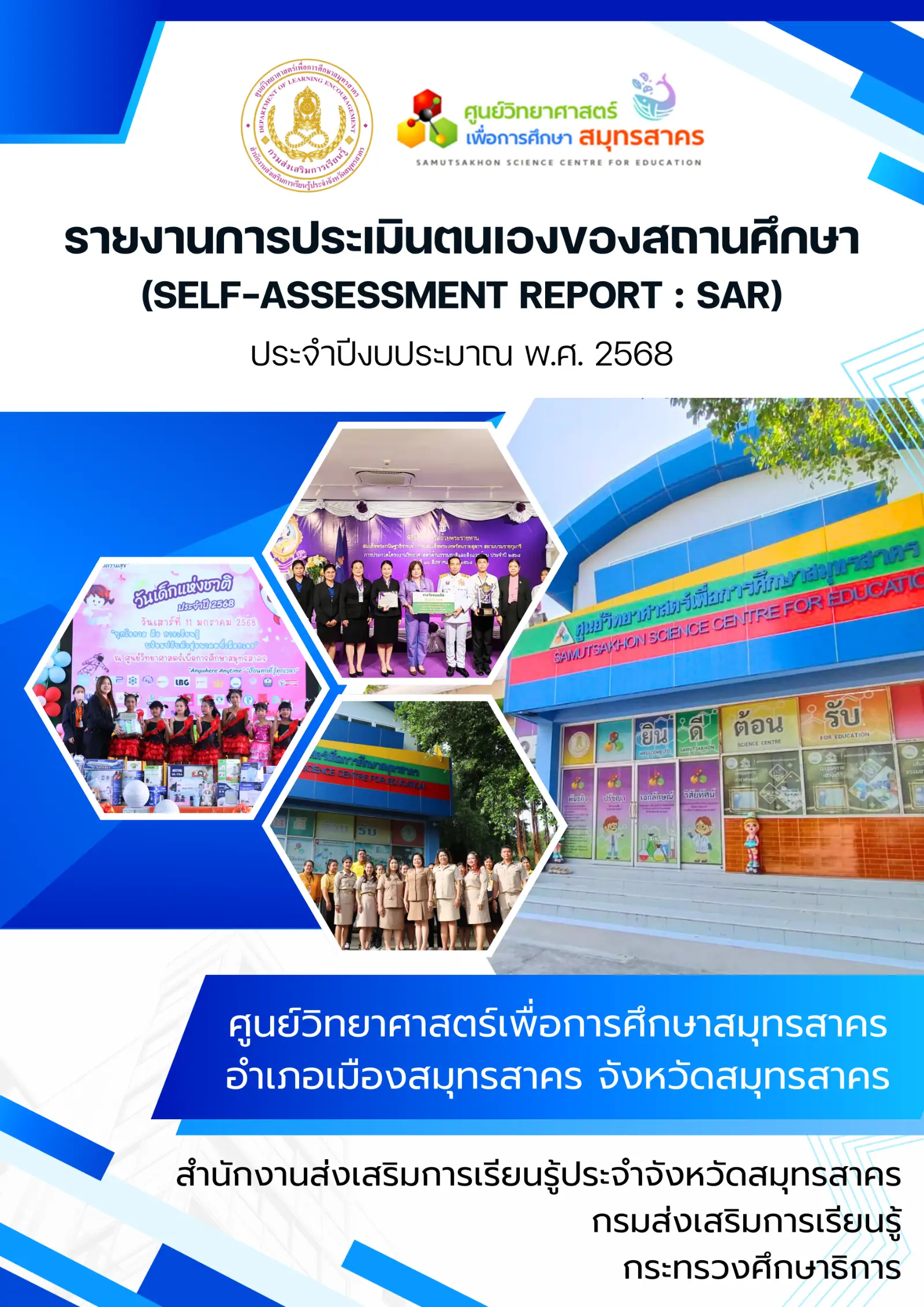 รายงานการประเมินตนเองของสถานศึกษาตามมาตรฐานการศึกษาของสถานศึกษา เพื่อเป็นการดำเนินงานให้สอดคล้องกับกฎกระทรวงดังกล่าวข้างต้น ศูนย์วิทยาศาสตร์เพื่อการศึกษาสมุทรสาคร จึงได้ดำเนินการแต่งตั้งคณะกรรมการประเมินตนเองของสถานศึกษาเพื่อประเมินคุณภาพภายในตามมาตรฐานการศึกษาของสถานศึกษา โดยวิเคราะห์จากแผนพัฒนาคุณภาพ