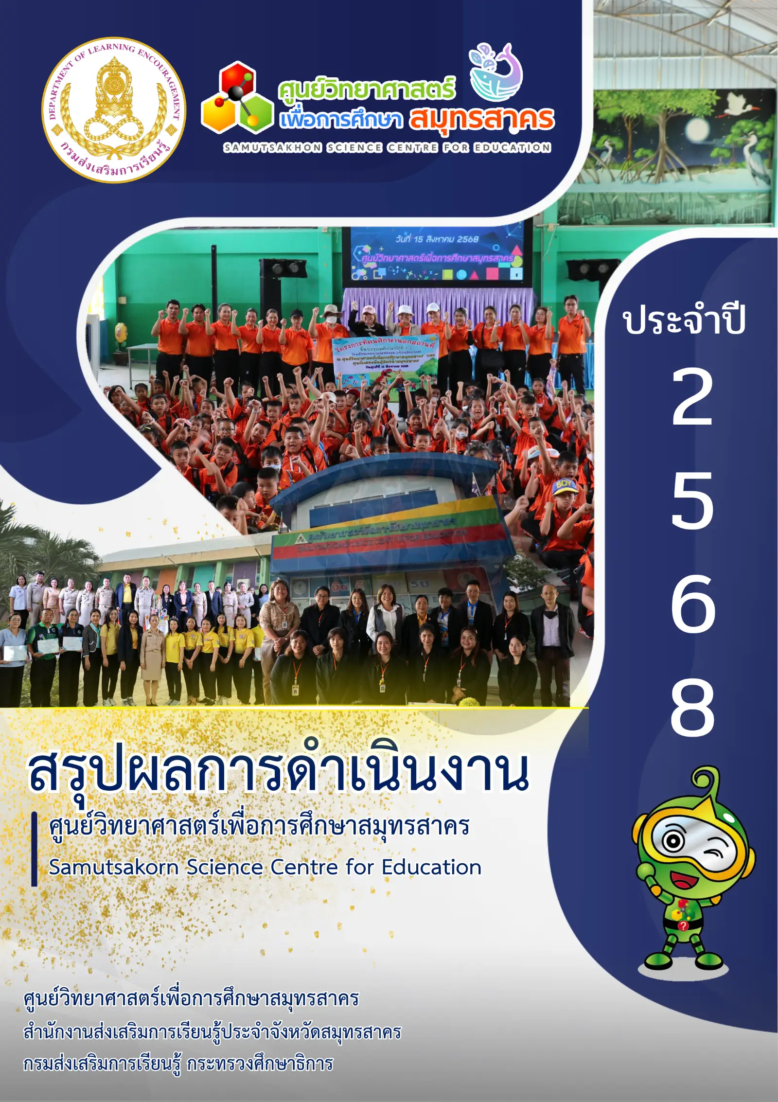 สรุปผลการดำเนินงาน ประจำปีงบประมาณ พ.ศ.2568 ของ ศูนย์วิทยาศาสตร์เพื่อการศึกษาสมุทรสาคร กรมส่งเสริมการเรียนรู้ กระทรวงศึกษาธิการ เป็นเอกสารที่จัดทำขึ้น เพื่อสรุปสาระสำคัญในภาพรวมของการดำเนินงาน ในปีงบประมาณ พ.ศ. 2568 (1 ตุลาคม 2567 – กันยายน 2568) เพื่อเป็นการสรุปข้อมูลในการจัดกิจกรรมที่ได้ดำเนินการและวางแผนการจัดกิจกรรมในปีงบประมาณต่อไป ให้มีประสิทธิภาพยิ่งขึ้น และเพื่อเผยแพร่แก่ผู้เกี่ยวข้องได้ทราบถึงผลการดำเนินงานโดยประกอบด้วยเนื้อหาการจัดกิจกรรมการเรียนรู้ที่ให้บริการ ผลการดำเนินงานระยะเวลาการดำเนินงานในปีงบประมาณ พ.ศ. 2568 ที่ผ่านมา