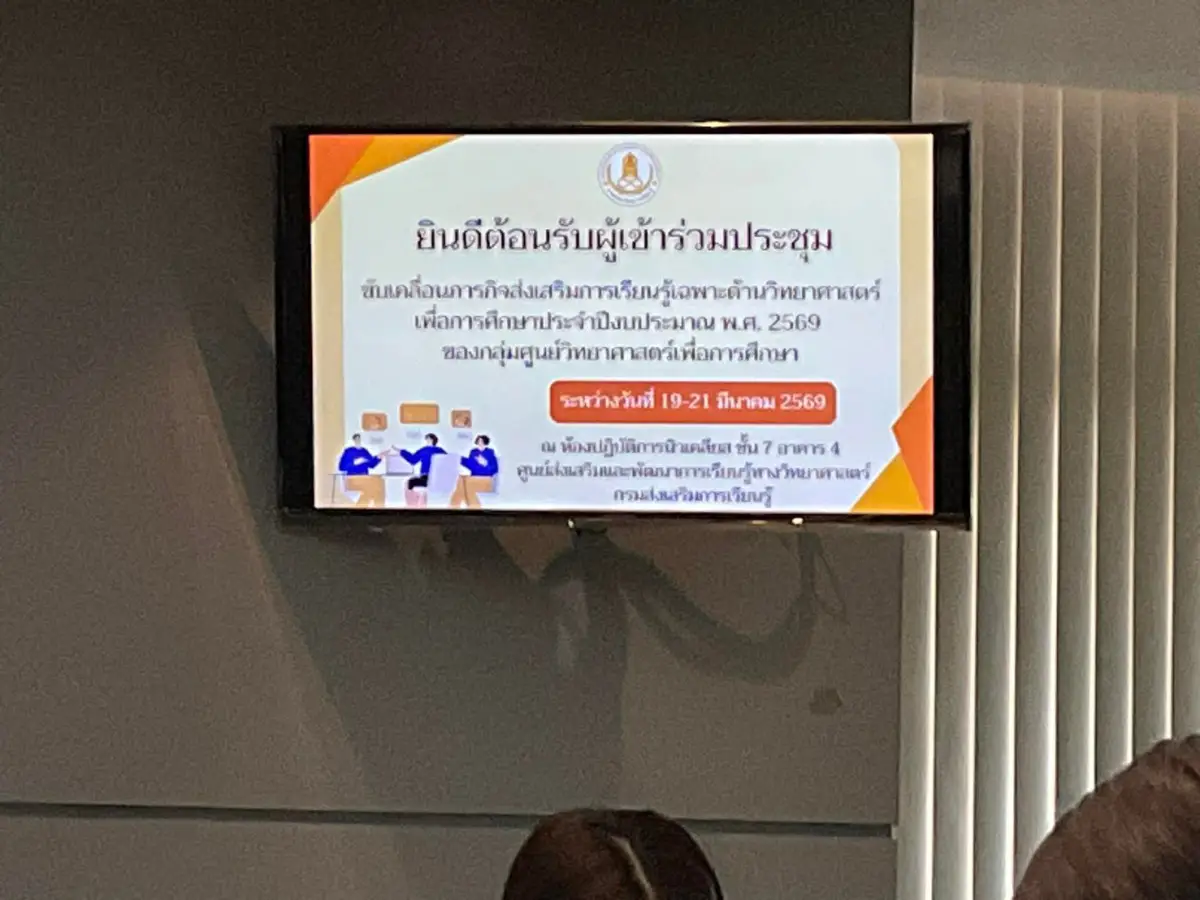 วันพฤหัสบดีที่ 19 มีนาคม 2569 ศูนย์วิทยาศาสตร์เพื่อการศึกษาสมุทรสาคร มอบหมายให้ นางสาวอิรัตน์สวดี เครือกาบ พนักงานราชการ เข้าร่วมประชุมขับเคลื่อนภารกิจส่งเสริมการเรียนรู้เฉพาะด้านวิทยาศาสตร์เพื่อการศึกษา ประจำปีงบประมาณ พ.ศ. 2569 ของศูนย์วิทยาศาสตร์เพื่อการศึกษา ณ ห้องปฏิบัติการนิวเคลียส ชั้น 7 อาคารธรรมชาติและสิ่งแวดล้อม ศูนย์ส่งเสริมและพัฒนาการเรียนรู้ทางวิทยาศาสตร์ ระหว่างวันที่ 19-21 มีนาคม 2569